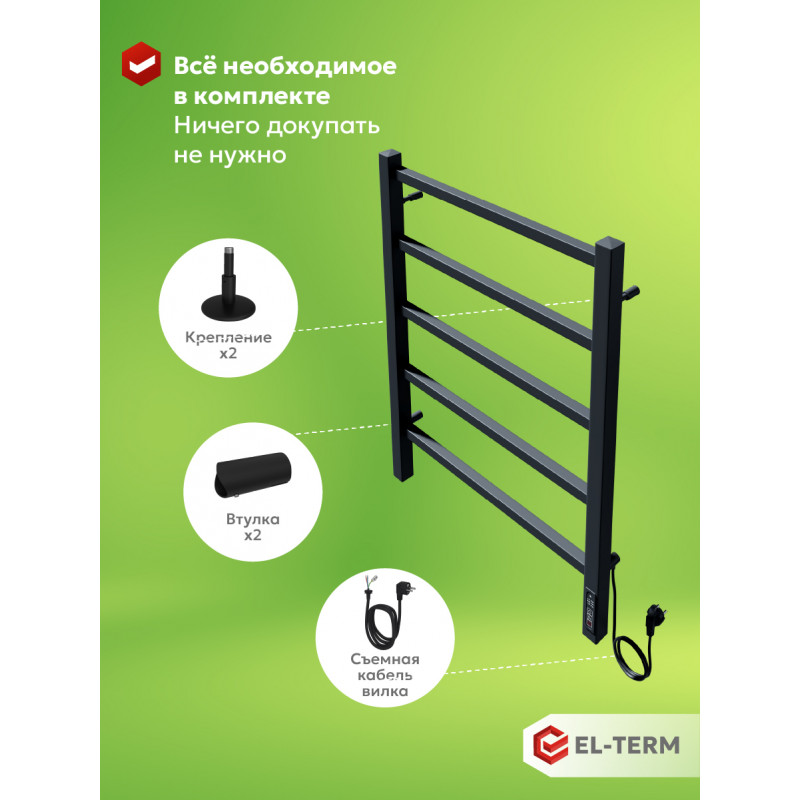 Полотенцесушитель электрический EL-TERM Рейн П5 500x700 КС 9005 черный матовый