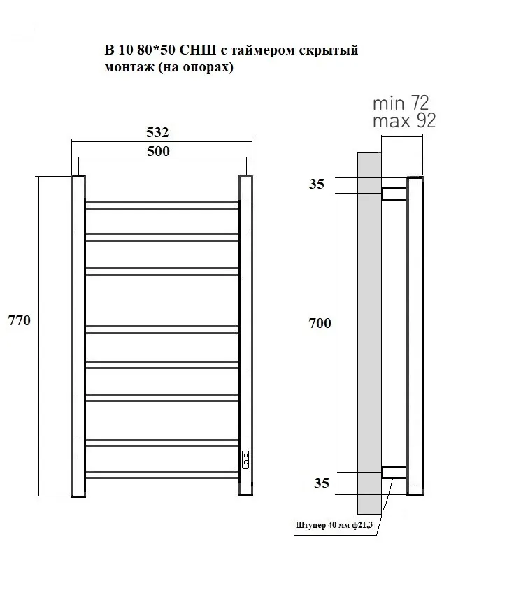 Полотенцесушитель электрический Маргроид Вид 10 СНШ 80x50 золото (таймер справа)