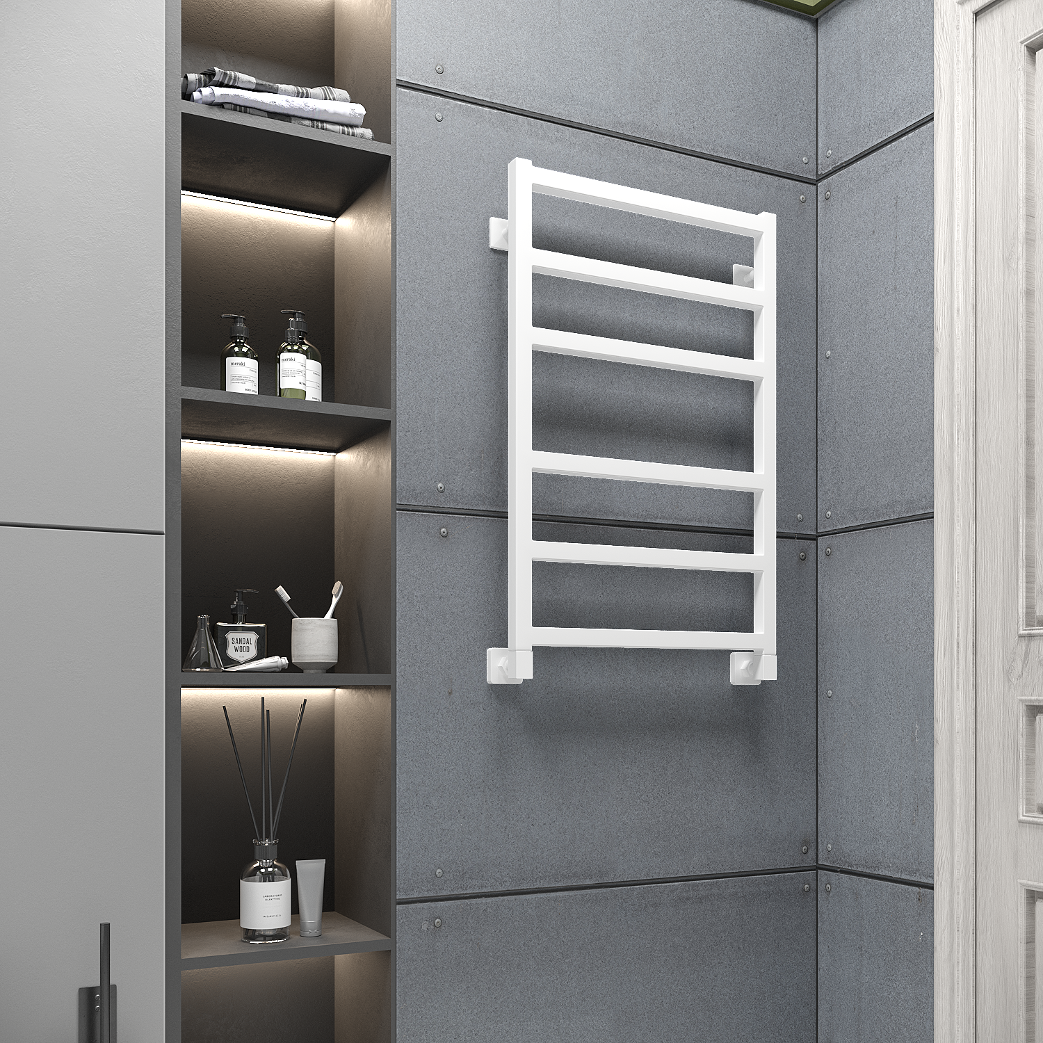 - Скрытое подключение дает возможность подключить электрический полотенцесушитель без видимых проводов