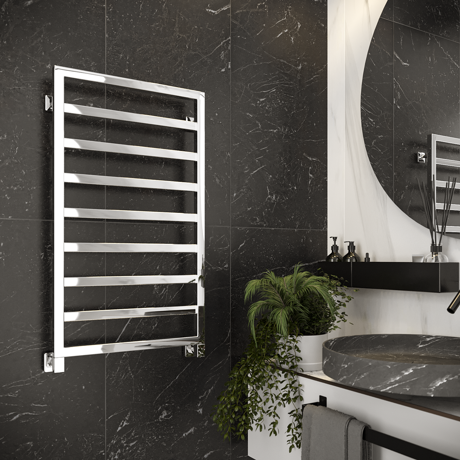 - Скрытое подключение дает возможность подключить электрический полотенцесушитель без видимых проводов