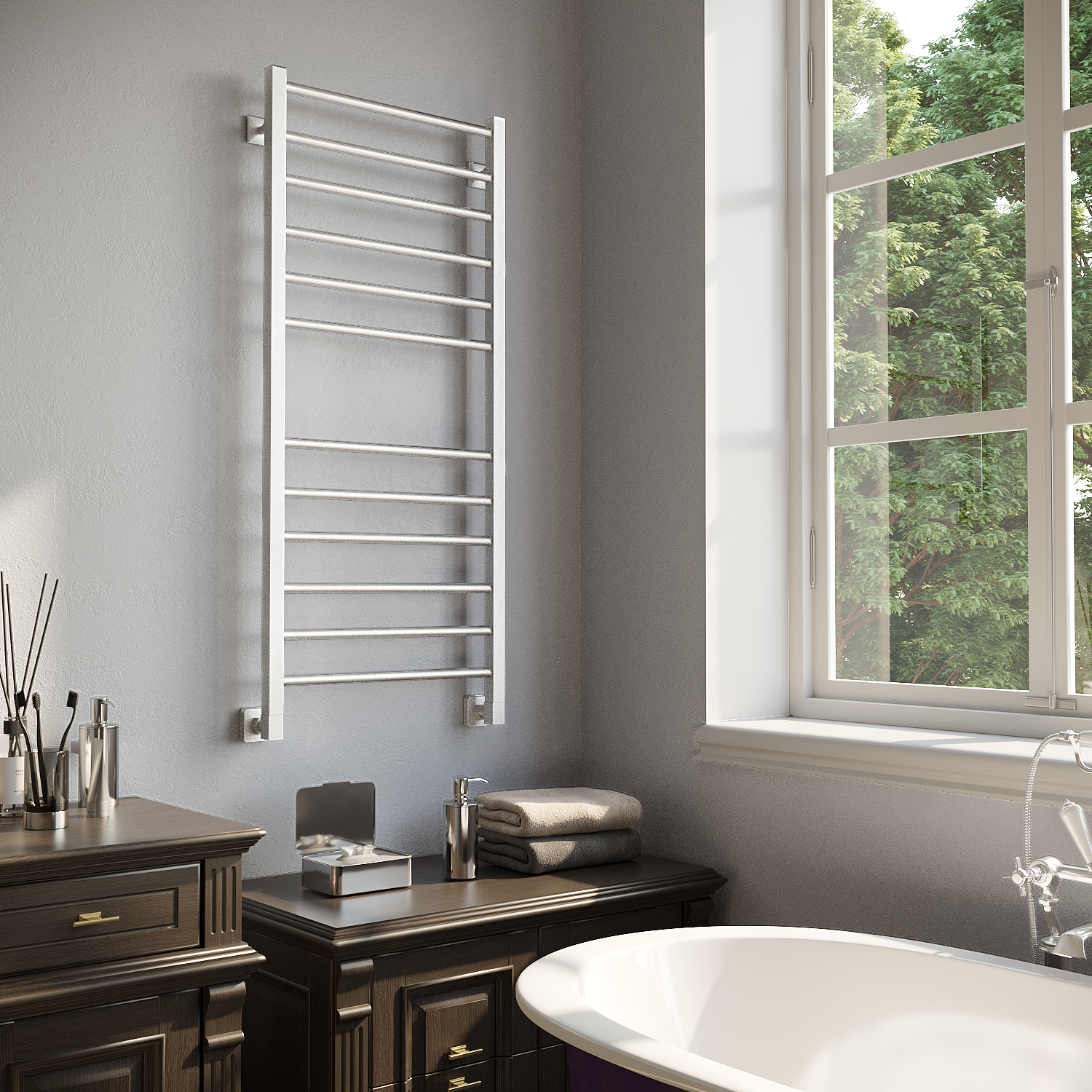 - Скрытое подключение дает возможность подключить электрический полотенцесушитель без видимых проводов