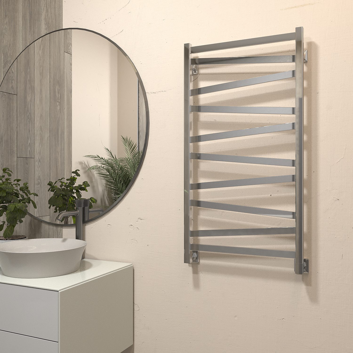 - Скрытое подключение дает возможность подключить электрический полотенцесушитель без видимых проводов