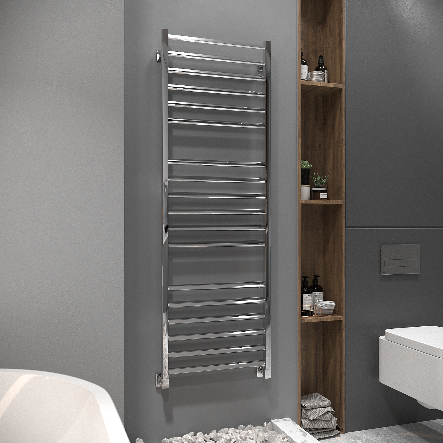 - Скрытое подключение дает возможность подключить электрический полотенцесушитель без видимых проводов