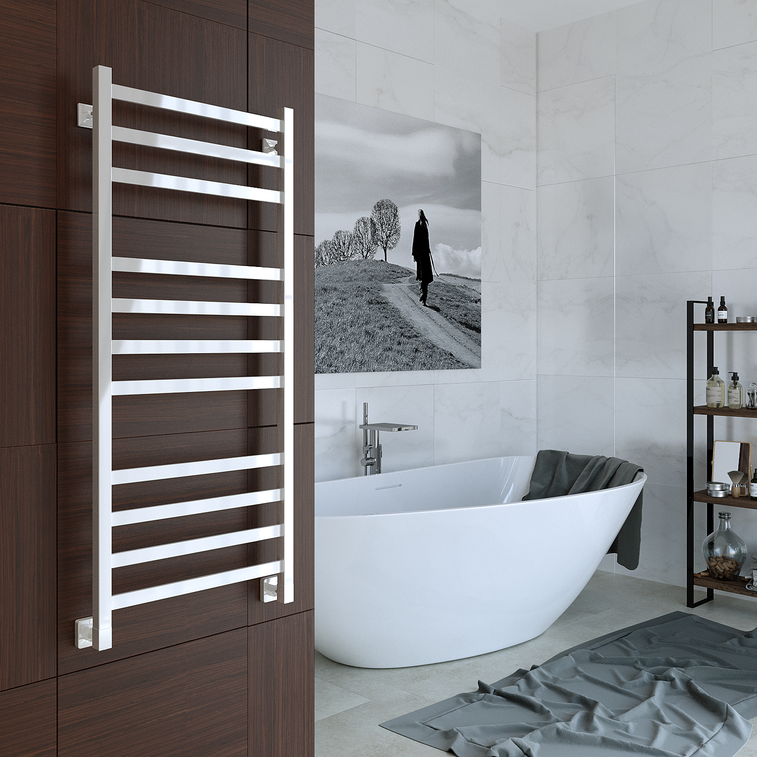 - Скрытое подключение дает возможность подключить электрический полотенцесушитель без видимых проводов