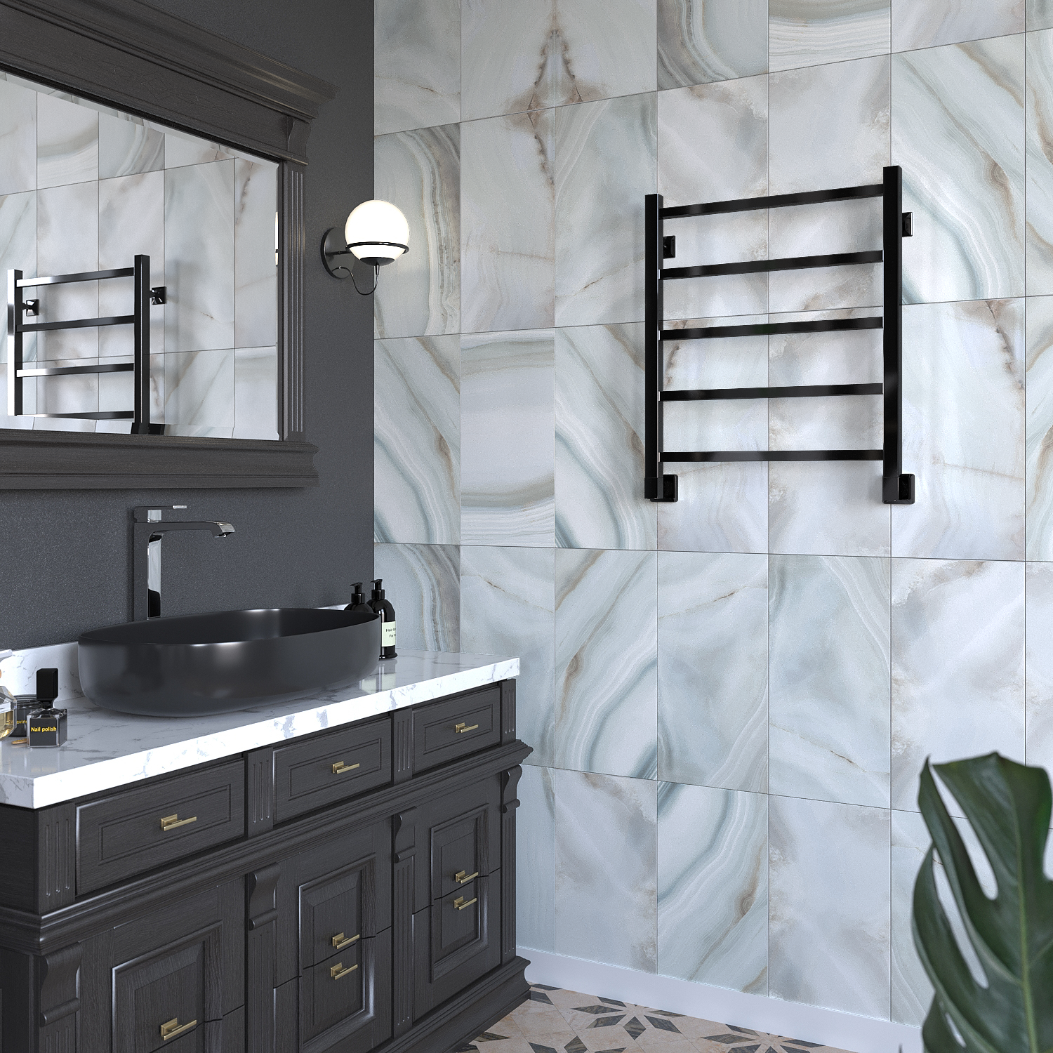 - Скрытое подключение дает возможность подключить электрический полотенцесушитель без видимых проводов