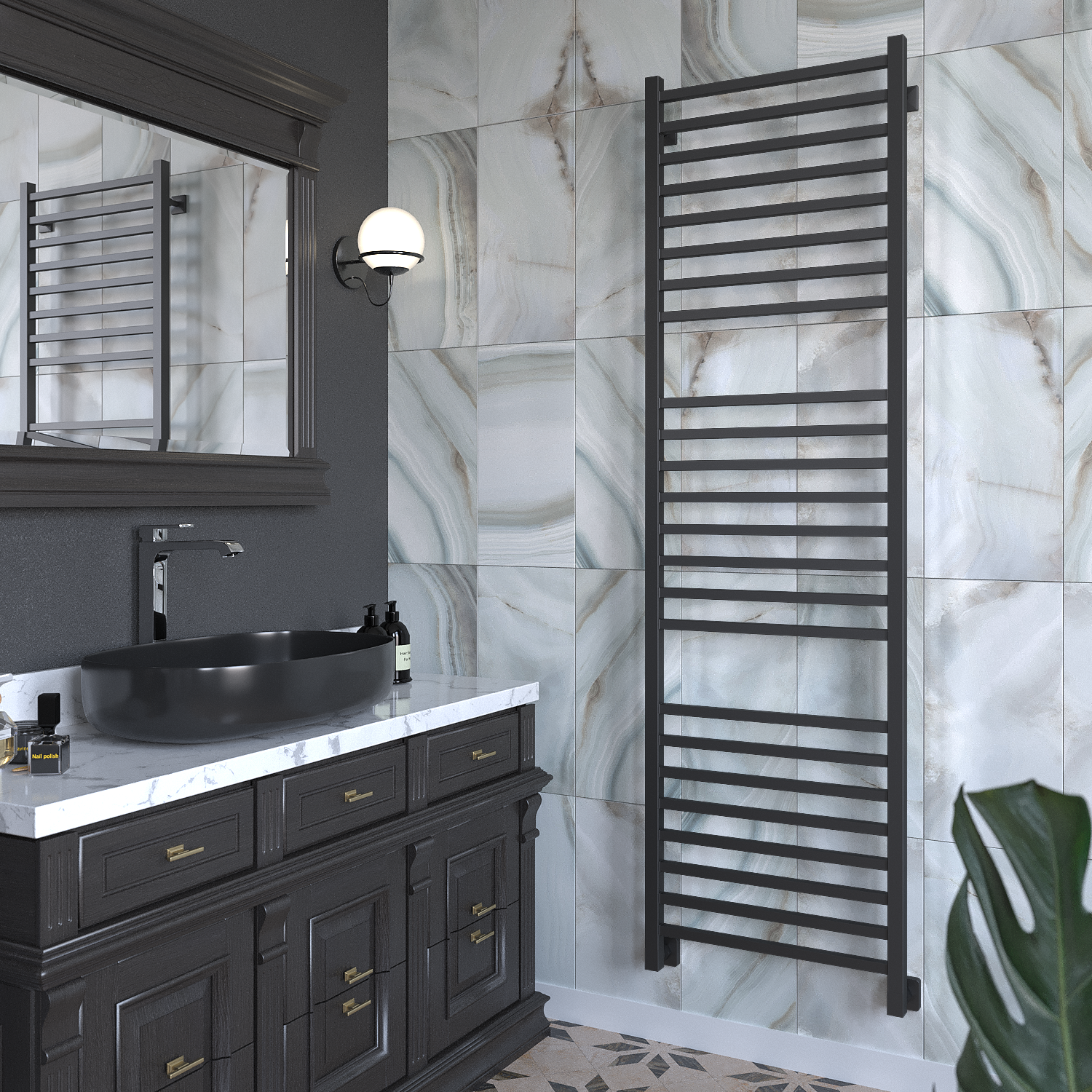Полотенцесушитель водяной Stinox Quatro Luxe 50x180 черный матовый