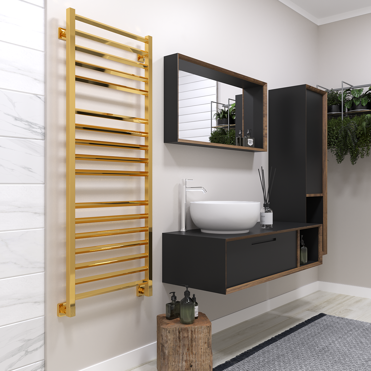 - Скрытое подключение дает возможность подключить электрический полотенцесушитель без видимых проводов
