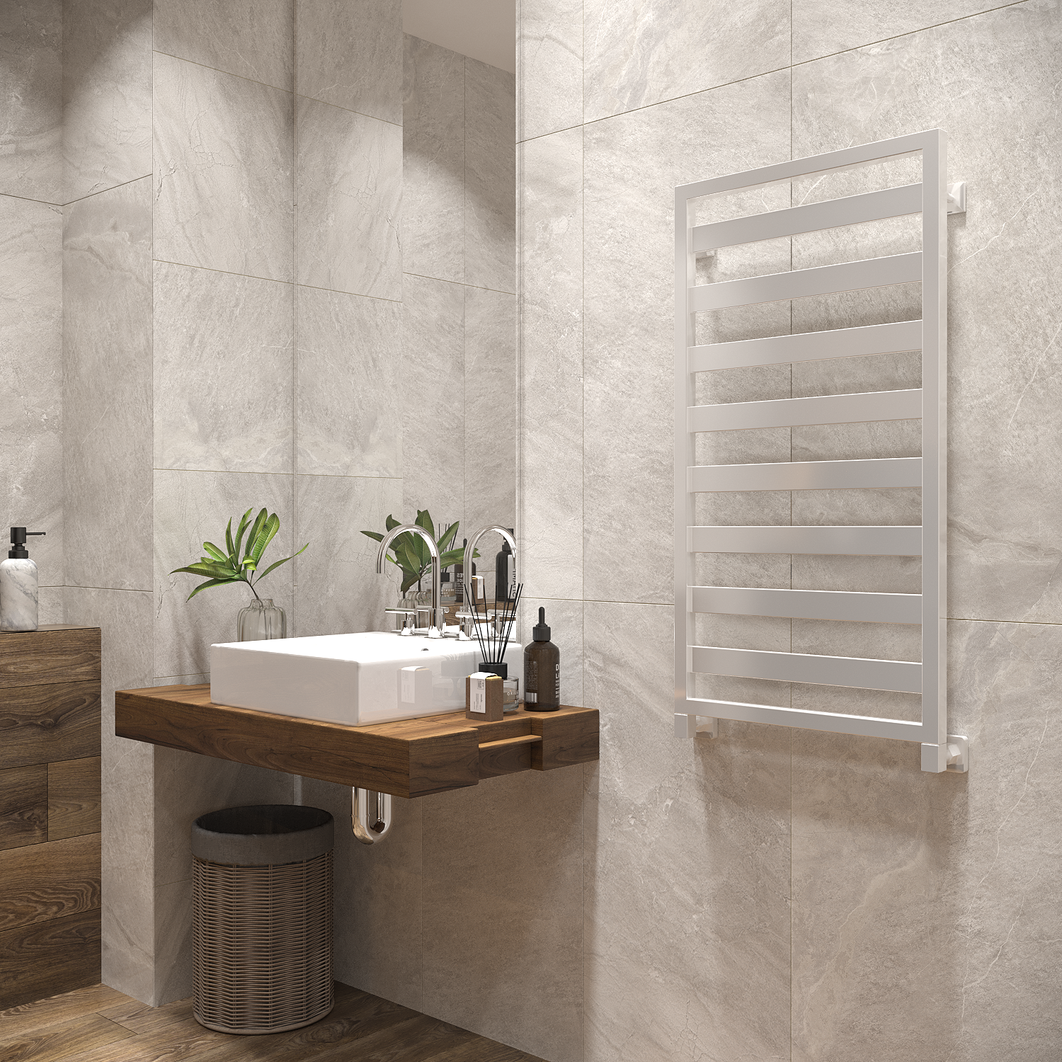 - Скрытое подключение дает возможность подключить электрический полотенцесушитель без видимых проводов