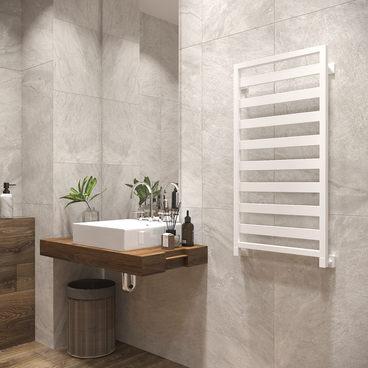 - Скрытое подключение дает возможность подключить электрический полотенцесушитель без видимых проводов
