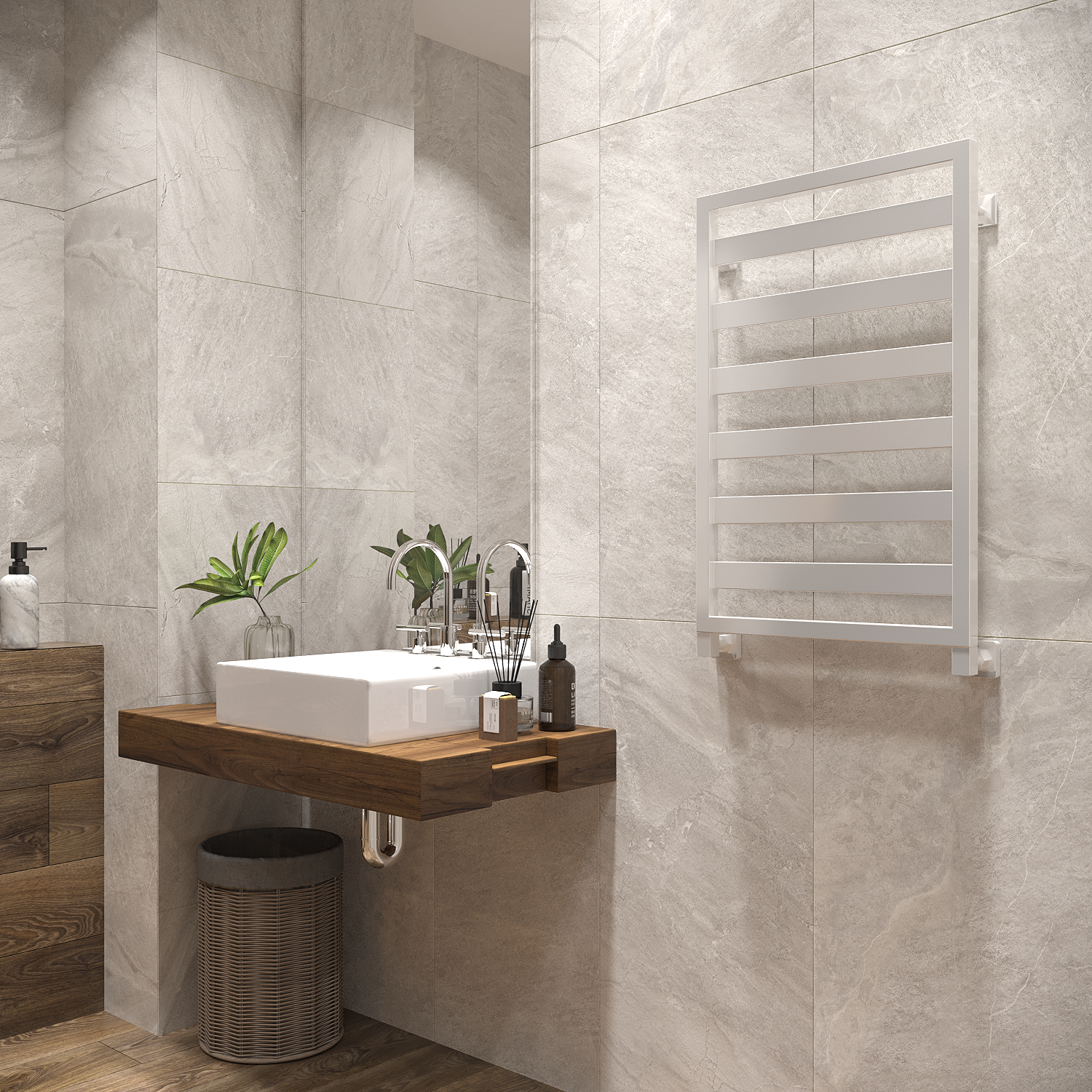 - Скрытое подключение дает возможность подключить электрический полотенцесушитель без видимых проводов