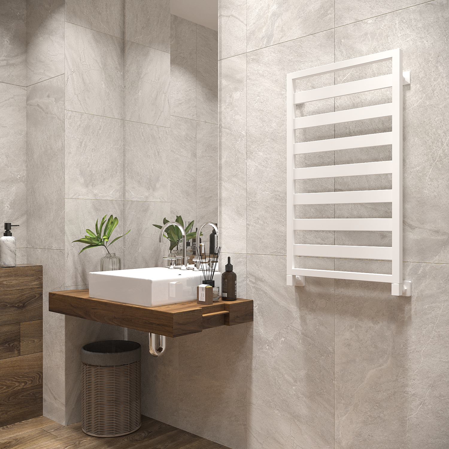 - Скрытое подключение дает возможность подключить электрический полотенцесушитель без видимых проводов