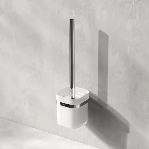 Коллекция аксессуаров Func — это гармоничное сочетание выразительного стиля, эстетики и инновационного подхода к функциональности каждого предмета. Автором дизайна этой уникальной серии выступила немецкая студия Design3. Для тех, кто ценит рациональное использование пространства в ванной, был разработан настенный стакан для хранения из коллекции Func. Этот практичный аксессуар изготовлен из прочного металлического сплава и элегантного матового стекла, что придаёт ему современный и лаконичный вид.