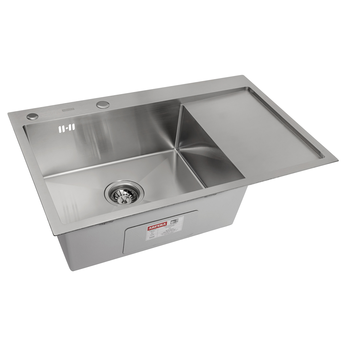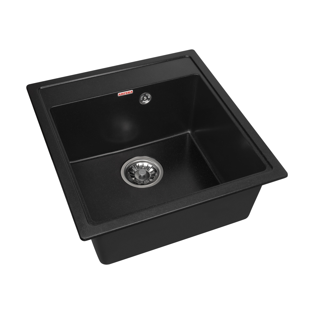 мойка кухонная arfeka eco ar 500x500 gs black glass + satin, стекло / нержавеющая сталь, сатин