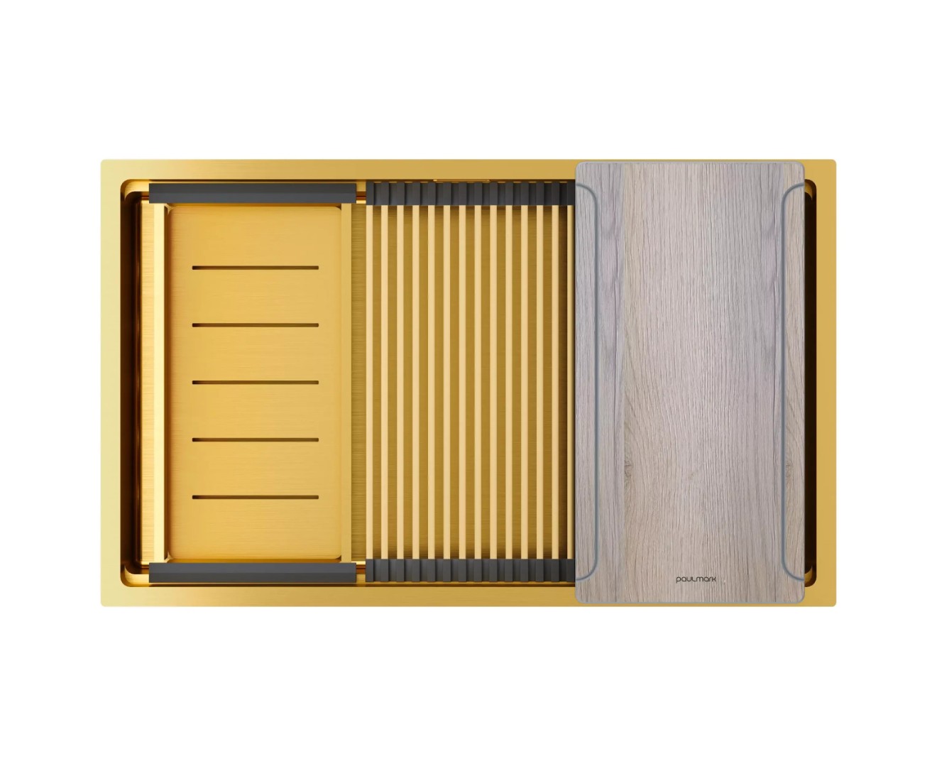Кухонная мойка Paulmark NEXT-MULTI SINK 74 UNI PM787445-BG 74x45 брашированное золото