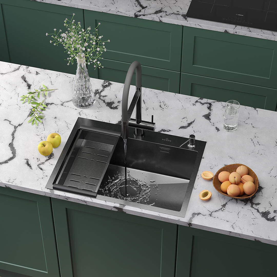 кухонная мойка roxen simple 560220-50b 50x50 pvd blaсk