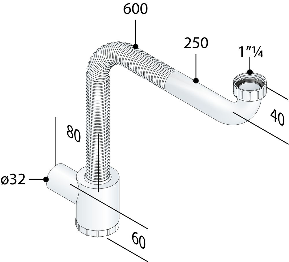 Сифон мебельный 1"1/4 OMP Tea 1950.600.5 белый