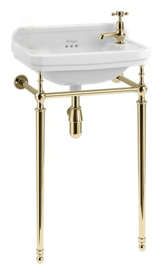 умывальник burlington classic b15 1th 65x57,5 (на 1 отверстие) с подстольем t49agold белый/золотоКод: 89315