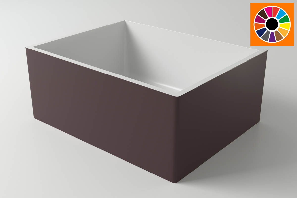 Возможность окраски в любой цвет по каталогу RAL: цветной матовый либо двухцветный (внутренняя поверхность белая матовая, снаружи умывальник цветной)