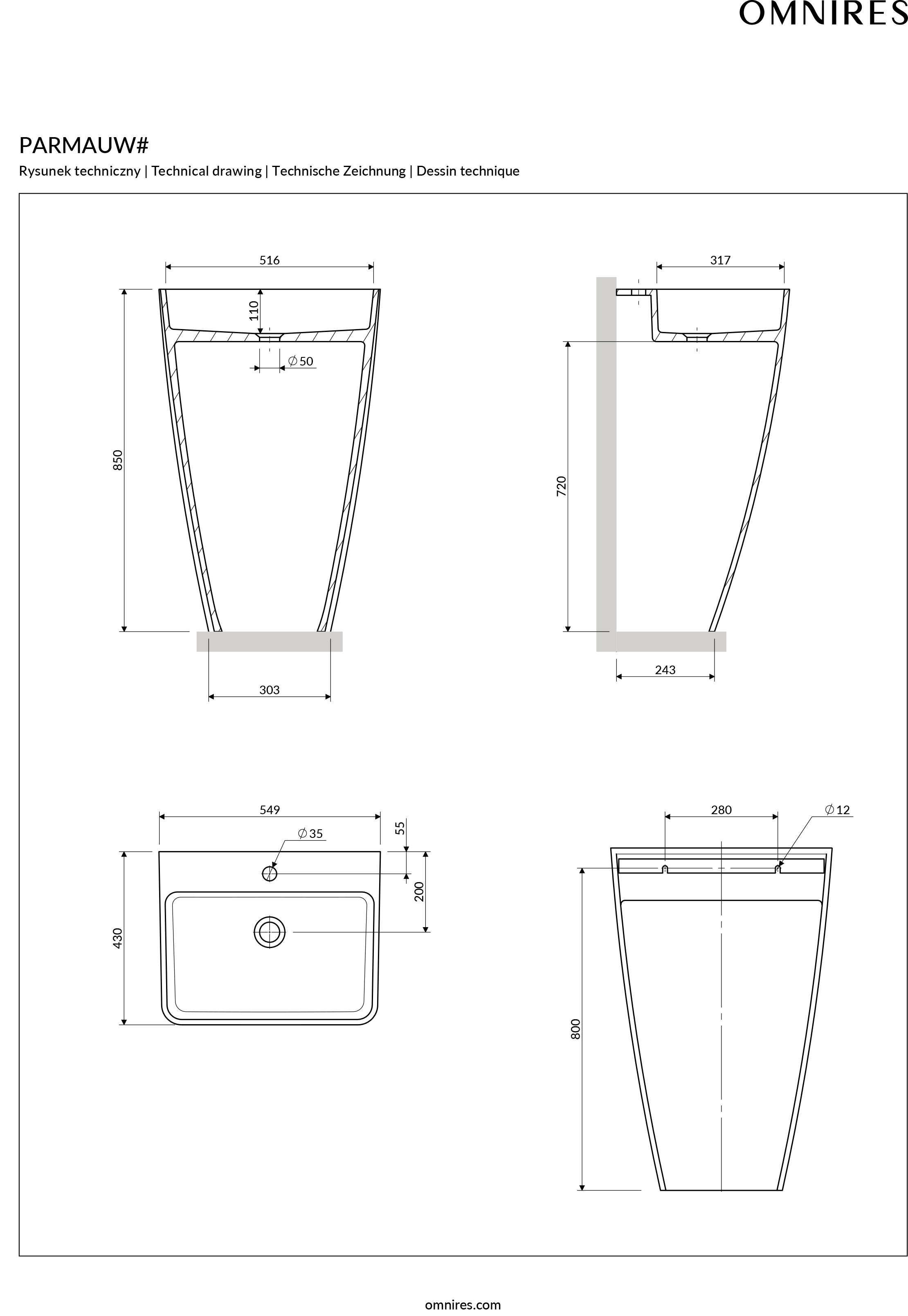 Умывальник Omnires Parma M+ PARMAUWBP 55x43 белый глянец