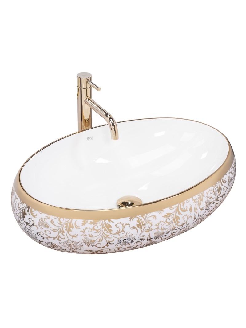 Умывальник Rea MELANIA Meryl 60x40 белый с золотым рисунком