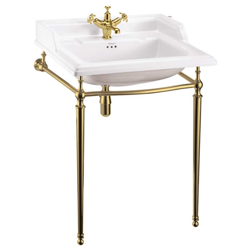 умывальник burlington classic b15 1th 65x57,5 (на 1 отверстие) с подстольем t49agold белый/золото