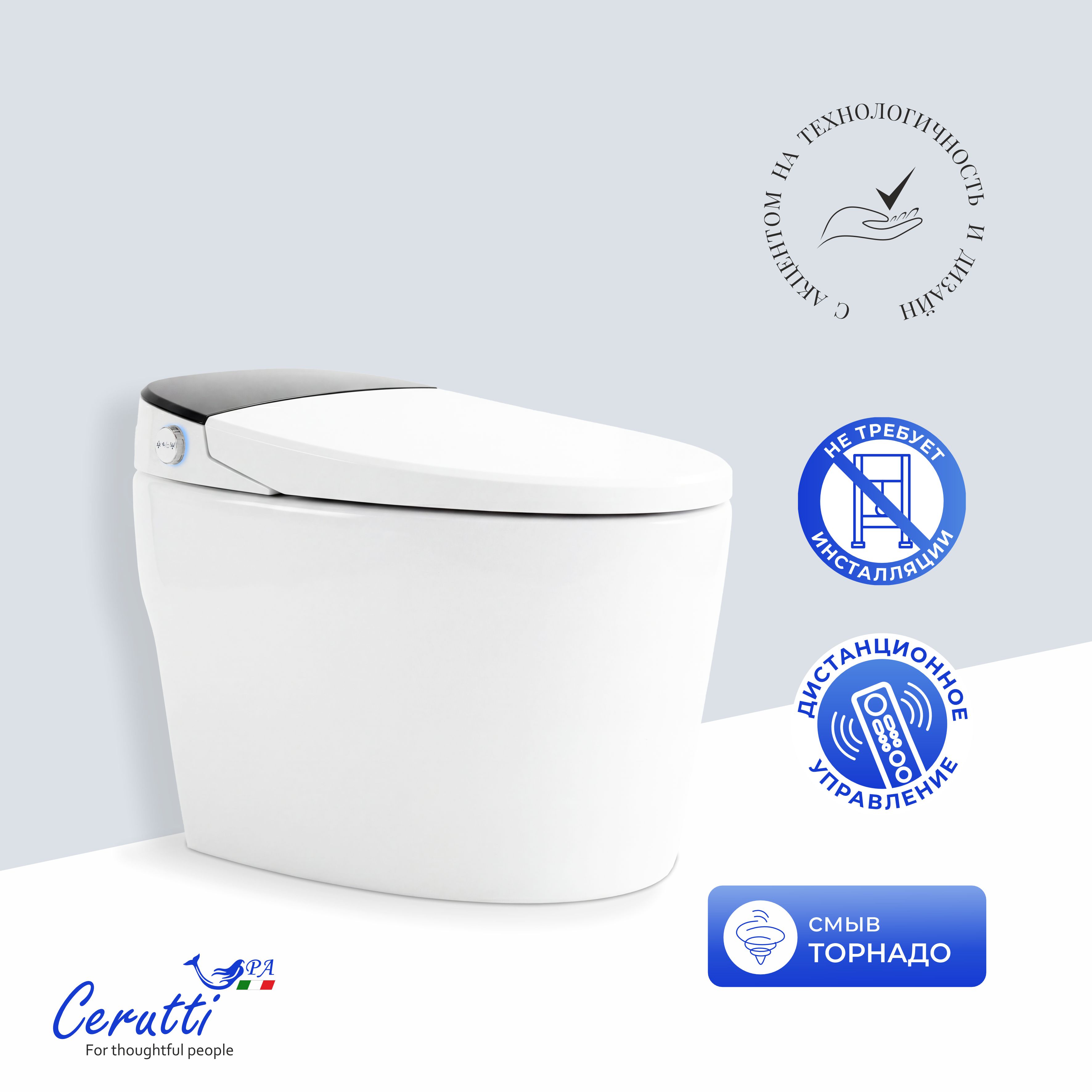 Умный унитаз CeruttiSpa Clio Smart CT12153 68x41 сиденье с дистанционным управлением, белый