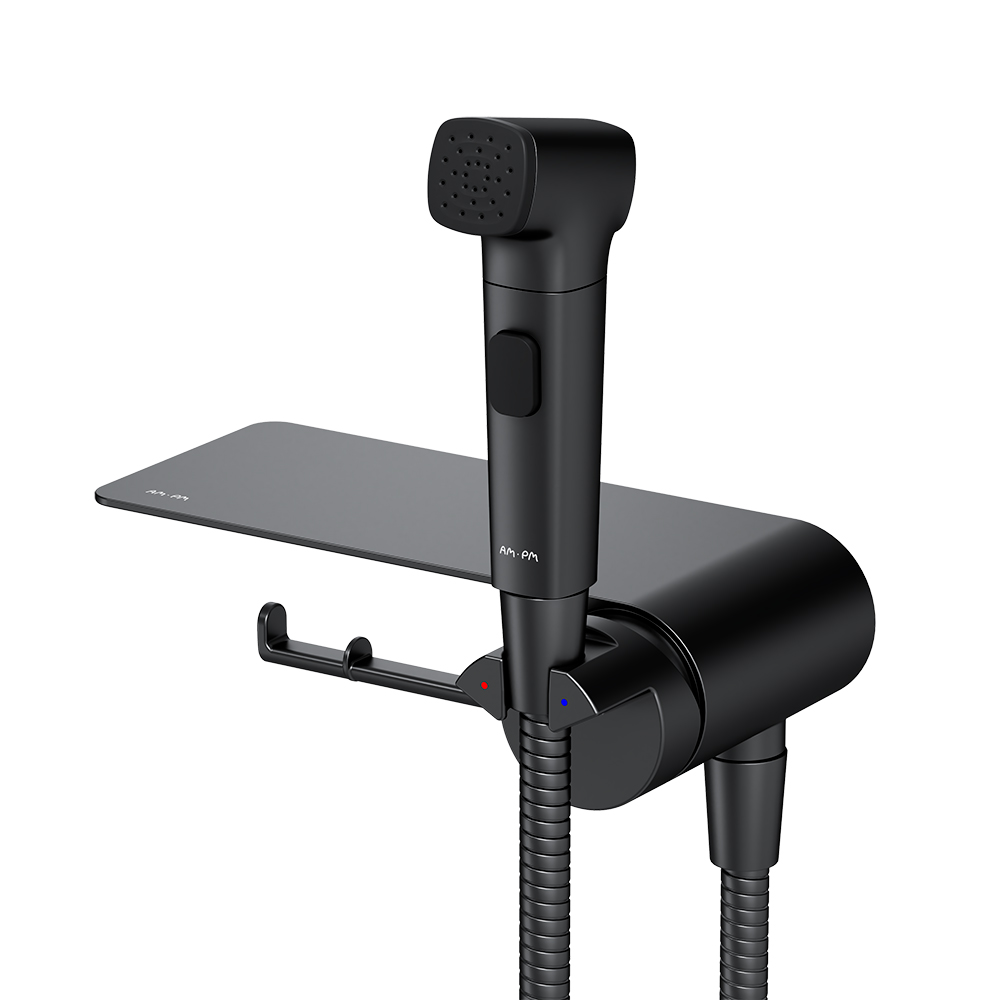 смеситель скрытого монтажа с гигиенической лейкой am.pm x-joy touchreel f0h85a522 черный матовый