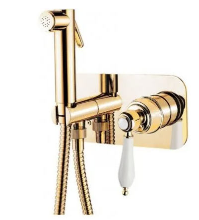 гигиенический душ со смесителем cezares aphrodite-dif-03/24-bi золото 24 карат, ручки белые