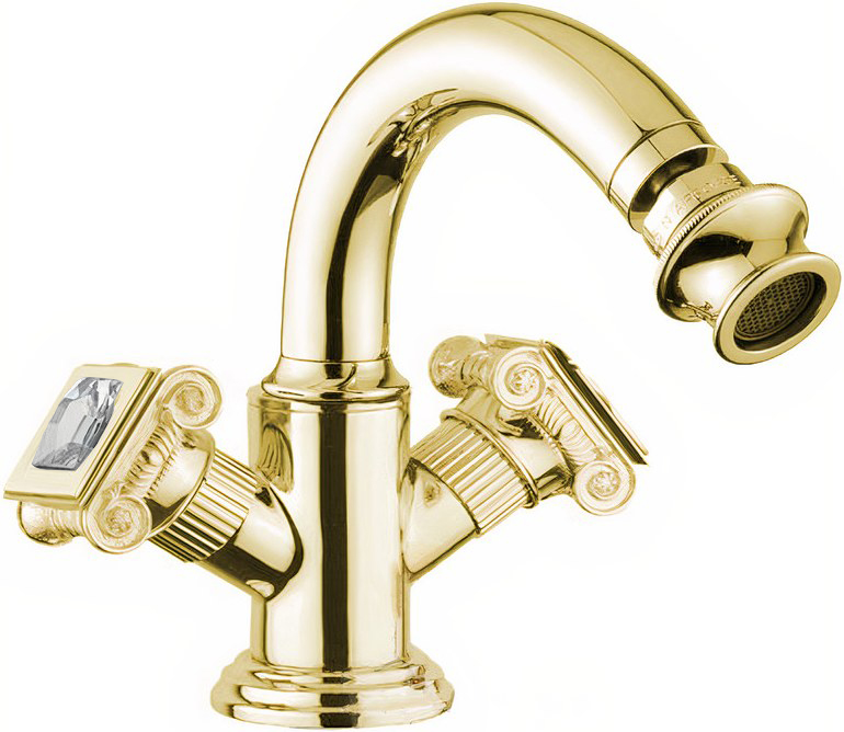Смеситель для биде Cezares APHRODITE-BS2-03/24-Sw с донным клапаном, золото, ручки Swarovski