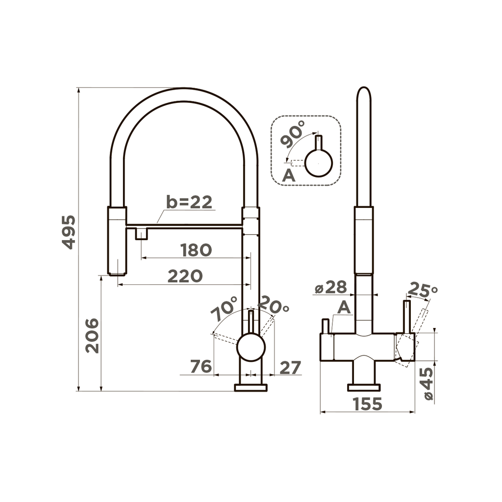 Технология PURE LIFE®: подключение фильтра для очистки воды. Фильтрованная вода подается по отдельной трубке и не смешивается с водопроводной водой.