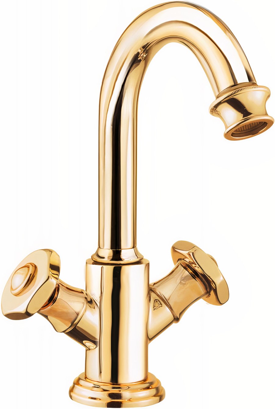 Смеситель для умывальника Cezares APHRODITE-LS2-03/24-S1 с донным клапаном, золото, ручки золото