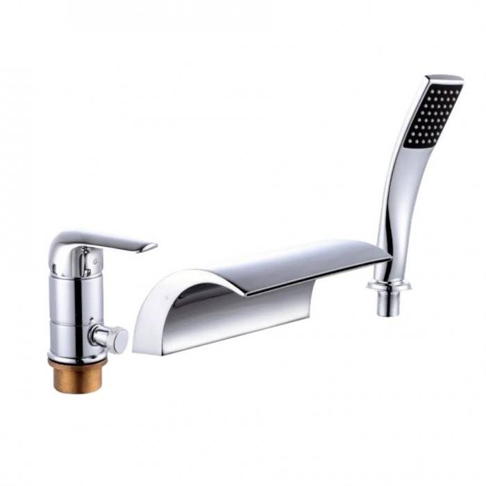 Смеситель на борт ванны Ganzer GZ24033 на 3 отверстия — модель в современном стиле с каскадным изливом и однорычажным управлением. Смеситель изготовлен из латуни класса А. Стильный и надежный смеситель станет неотъемлемой частью вашего повседневного комфорта. В комплекте вытяжной душевой гарнитур с однорежимной лейкой. Переключатель на душевой режим расположен на корпусе излива.