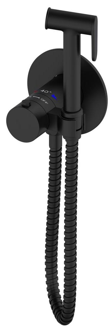 Смеситель с гигиеническим душем Oliveeka OL-829909-MB черный матовый (с термостатом)