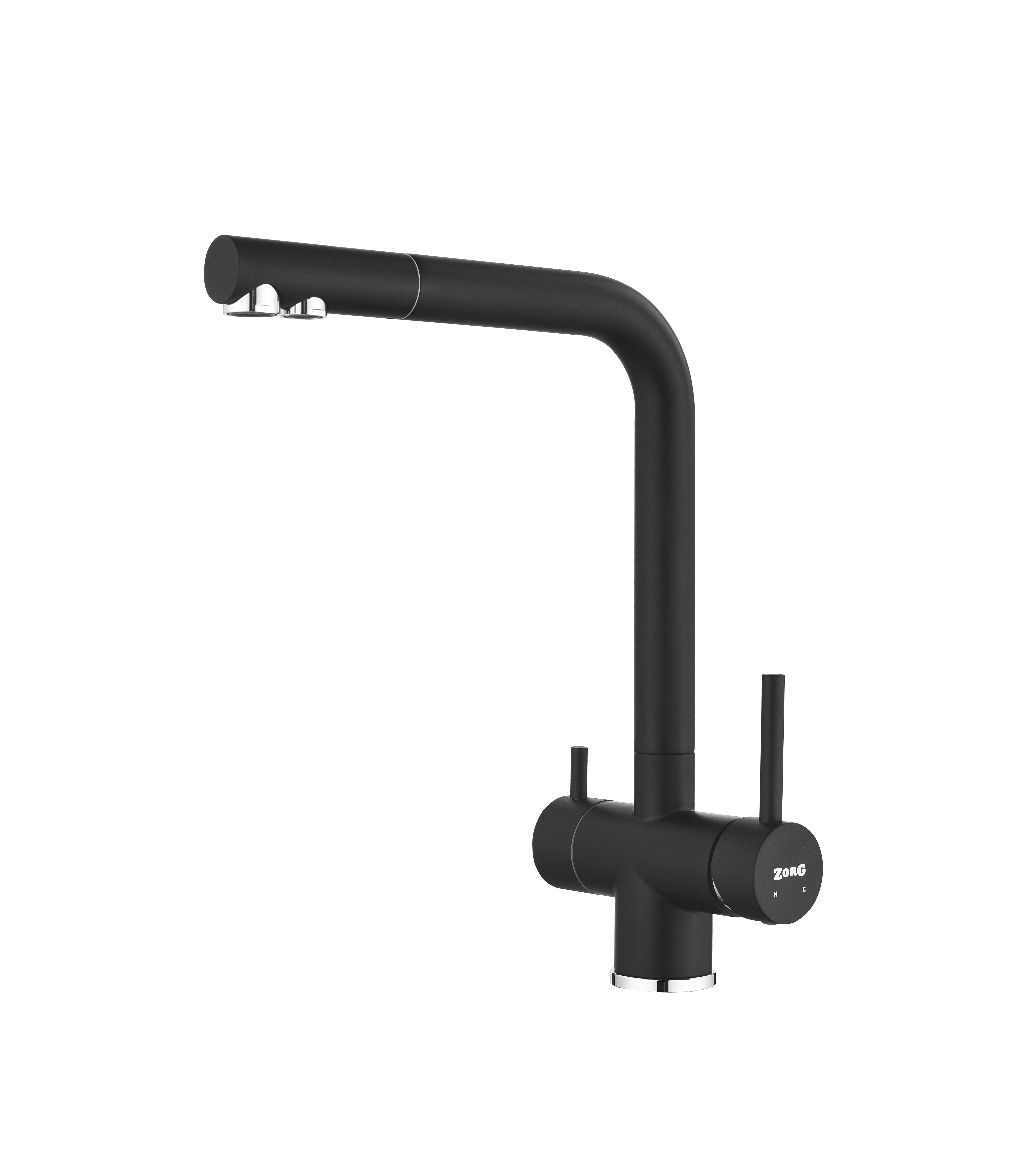 смеситель для кухни zorg asgard premium pvd gunblack с подключением фильтра, оружейная сталь/черный