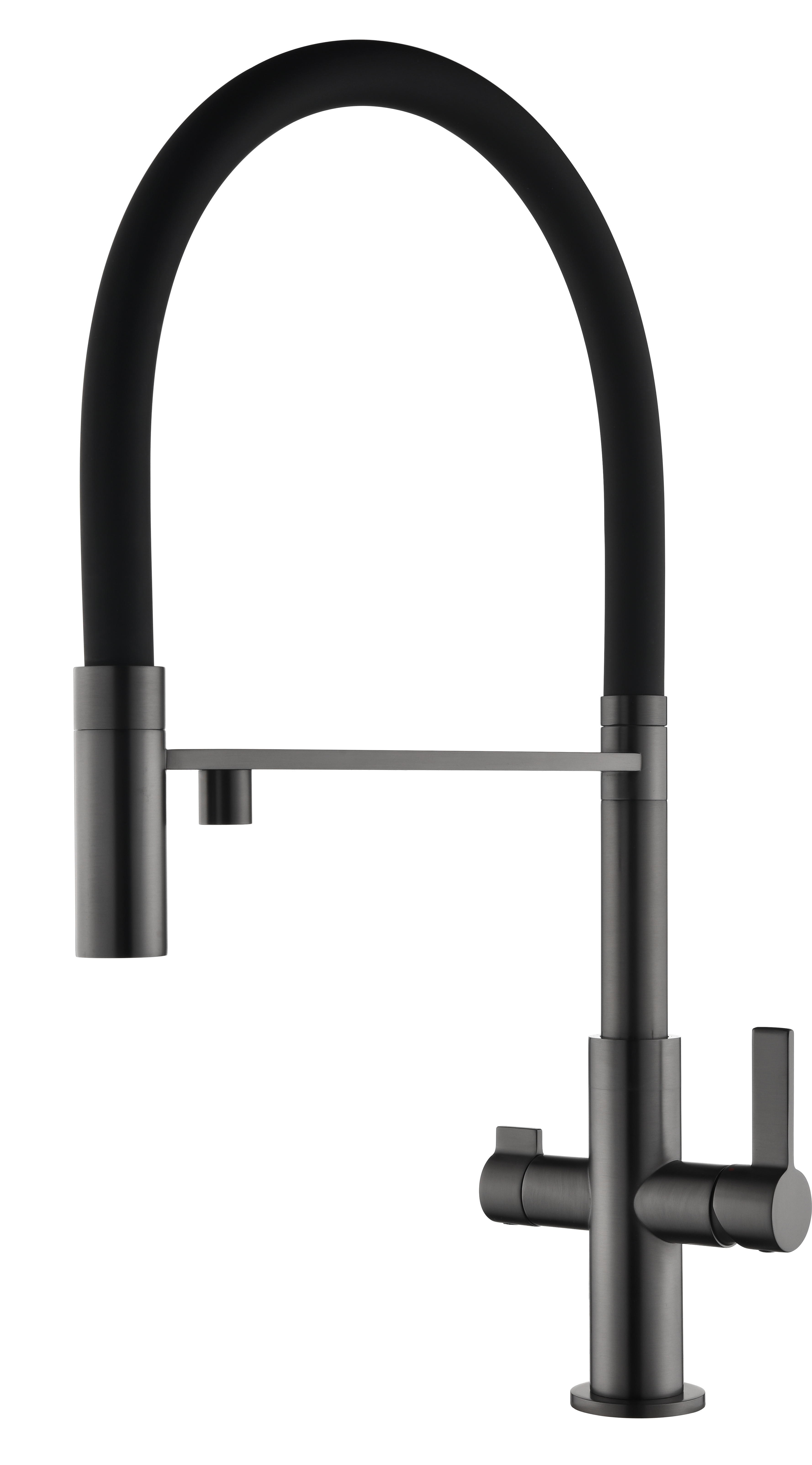 смеситель для кухни zorg titan premium pvd gunblack с подключением фильтра, оружейная сталь