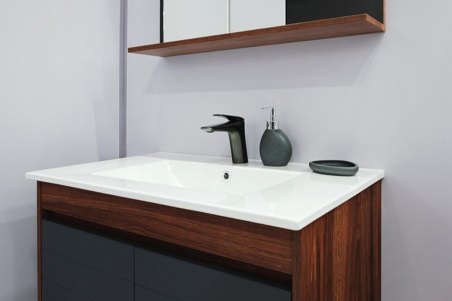 Глубина раковины (расстояние от стены до внешнего края чаши) должна быть от 25 до 45 см. Более глубокие модели могут быть неудобны при ограниченном пространстве, особенно если раковина размещена напротив входа или рядом со стиральной машиной. По высоте стандартная установка — 85–90 см от пола до верхнего края чаши, но это значение можно адаптировать в зависимости от роста жильцов и конструкции тумбы.