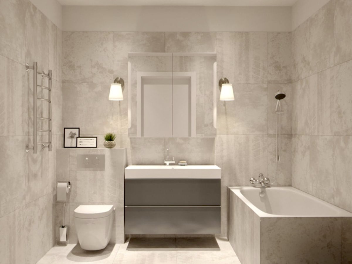 - Нейтральные оттенки: выбирайте спокойные цвета отделки и классические для сантехники, чтобы достичь максимального расслабления.