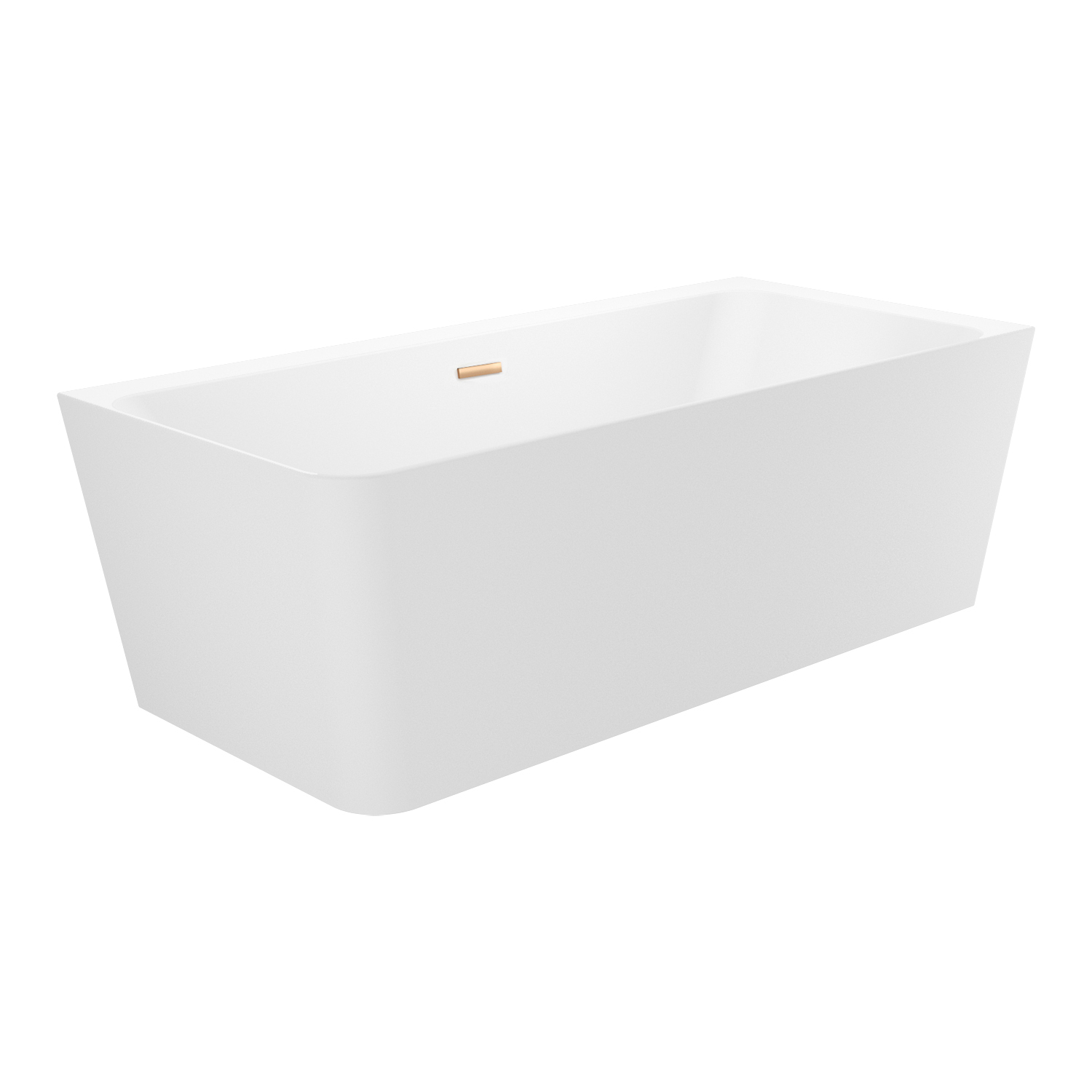 Пристенная ванна из литьевого акрила станет не только стильным акцентом, но и функциональным решением в ванных комнатах с ограниченным пространством. Имитация отдельностоящей ванны достигается за счет аналогичной несъемной панели, при этом чаша прилегает вплотную к стене. Такой монтаж удобен для купания и принятия душа, предотвращает попадание брызг, пены и мелких предметов за пределы «мокрой» зоны.