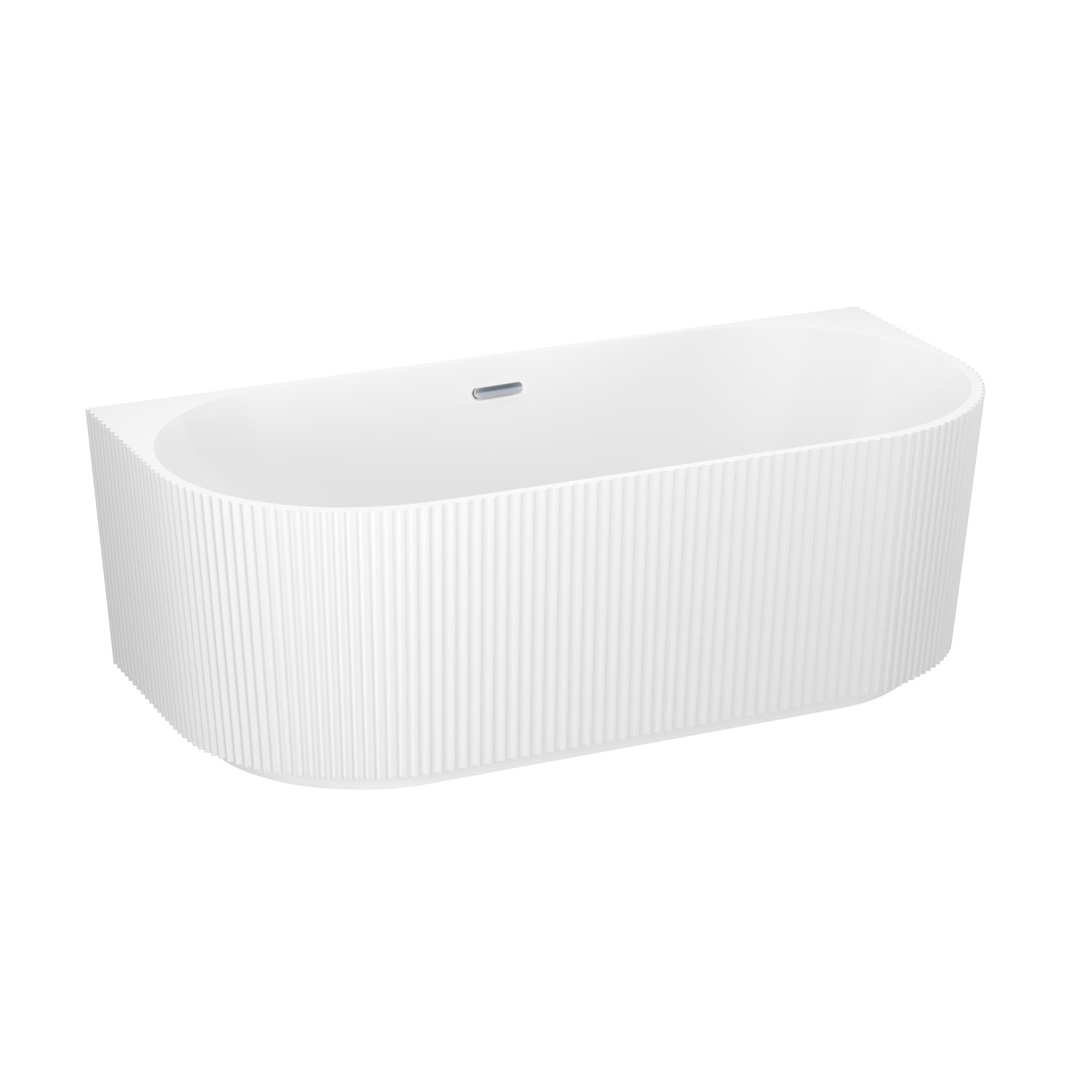 Пристенная ванна из литьевого акрила станет не только стильным акцентом, но и функциональным решением в ванных комнатах с ограниченным пространством. Имитация отдельностоящей ванны достигается за счет аналогичной несъемной панели, при этом чаша прилегает вплотную к стене. Такой монтаж удобен для купания и принятия душа, предотвращает попадание брызг, пены и мелких предметов за пределы «мокрой» зоны.