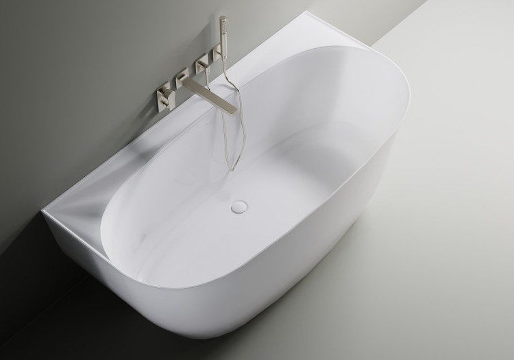 Ванна из искусственного камня Astra-Form Атрия 170x85 пристенная, Solid Surface белый матовый, с щелевым переливом, донный клапан белый матовый